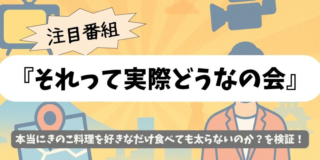 テレビ番組『巷のウワサ大検証!それって実際どうなの会』が、2025年10月1日(水)よる7時から「キノコ料理はどれだけ食べても太らない?」企画を放送すると公式に発表されました。 この告知を受けて、検索ユーザーは「本当に、きのこ料理を好きなだけ食べ... -