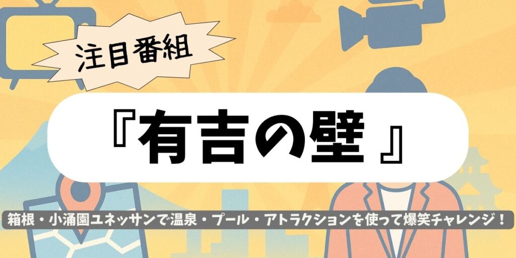 「有吉の壁 箱根SP」の小涌園ユネッサンについて検索される方は、おそらく「テレビ番組『有吉の壁』の箱根SPで、箱根・小涌園ユネッサンが舞台になる放送内容を知りたい」「番組で出てきたユネッサンの施設や見どころを実際に体験したい」「アクセス・料金... -