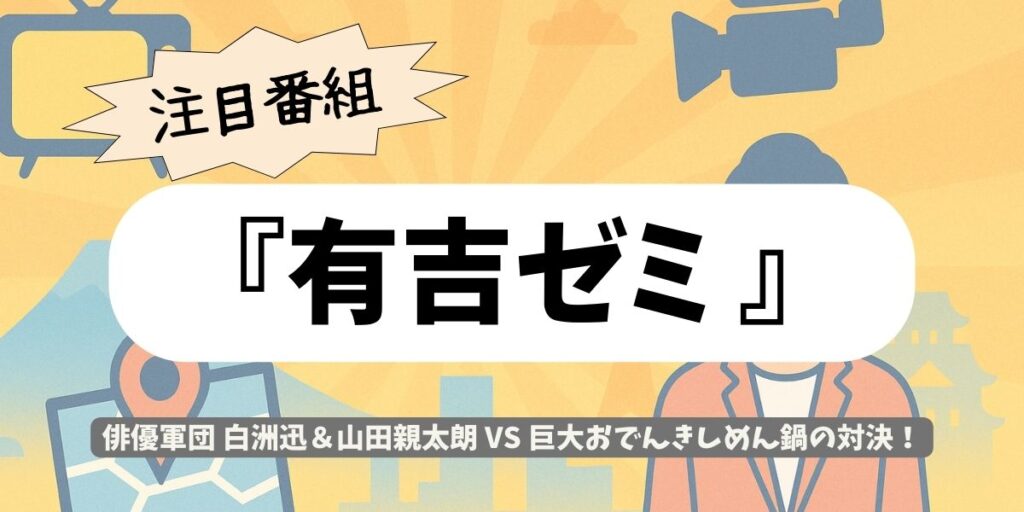 「有吉ゼミ チャレンジグルメ 完食祭り!激闘4番勝負」の中でも、とりわけ話題をさらっているのが俳優軍団 白洲迅&山田親太朗 VS 巨大おでんきしめん鍋の対決です。 視聴者の検索意図として多いのは、「この回はいつ放送されるのか」「他にどんな対決が... -