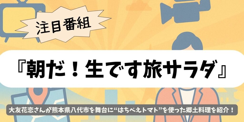 2025年9月6日(土)朝8時から、『朝だ!生です旅サラダ』のロコレココーナーにて、大友花恋さんが熊本県八代市を舞台にしたスペシャルな旅をお届けしました。 番組では、八代が誇る「冬トマト」、すなわち、10月から6月にかけて出荷され、その濃厚な甘さと... -