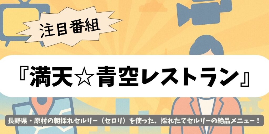 こんにちは。2025年9月6日放送の『満天☆青空レストラン』で紹介された食材が、長野県・原村の“朝採れセルリー(セロリ)”でした。 「セロリってちょっと苦手…」という方も、「信州の高原野菜って本当に美味しそう!」と思われた方も、この記事にはぜひ目を... -