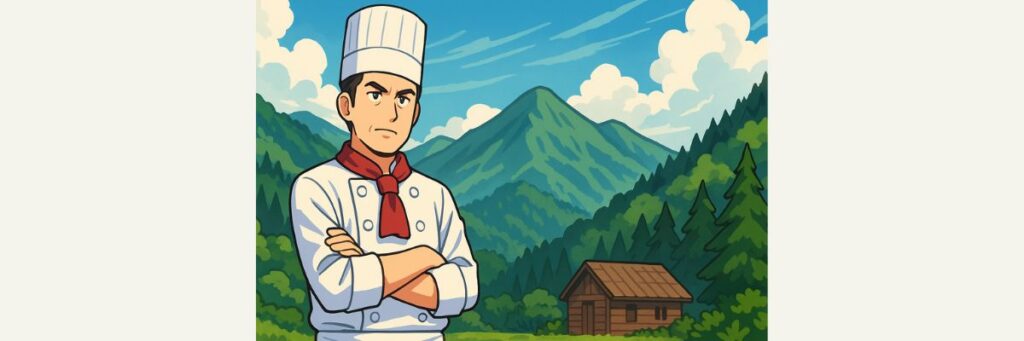 この構図は、「ホテルの厨房という最高級の舞台」から「インフラのない山奥」という真逆とも言える環境への転身――そのギャップにこそ強い惹きがあるのです。